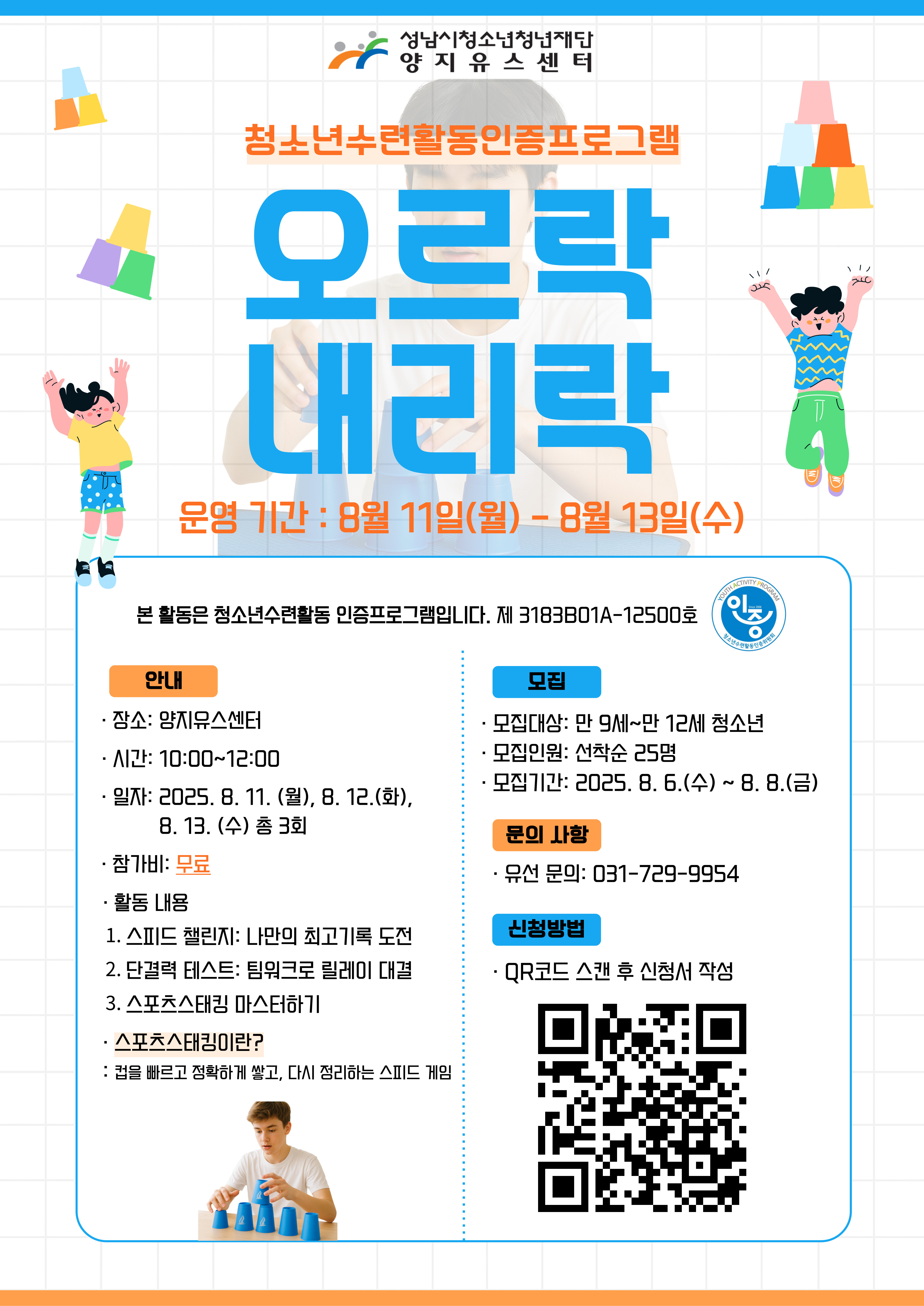 - 활동내용: 스포츠스태킹 기초 교육 및 개별 챌린지, 릴레이 협동 미션을 통한 팀워크 훈련 등