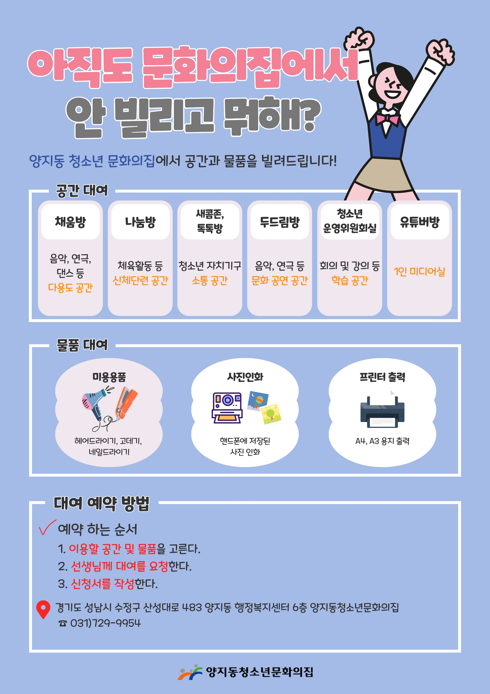 양지동청소년문화의집에서는 공간 및 물품을 대여해 드립니다.