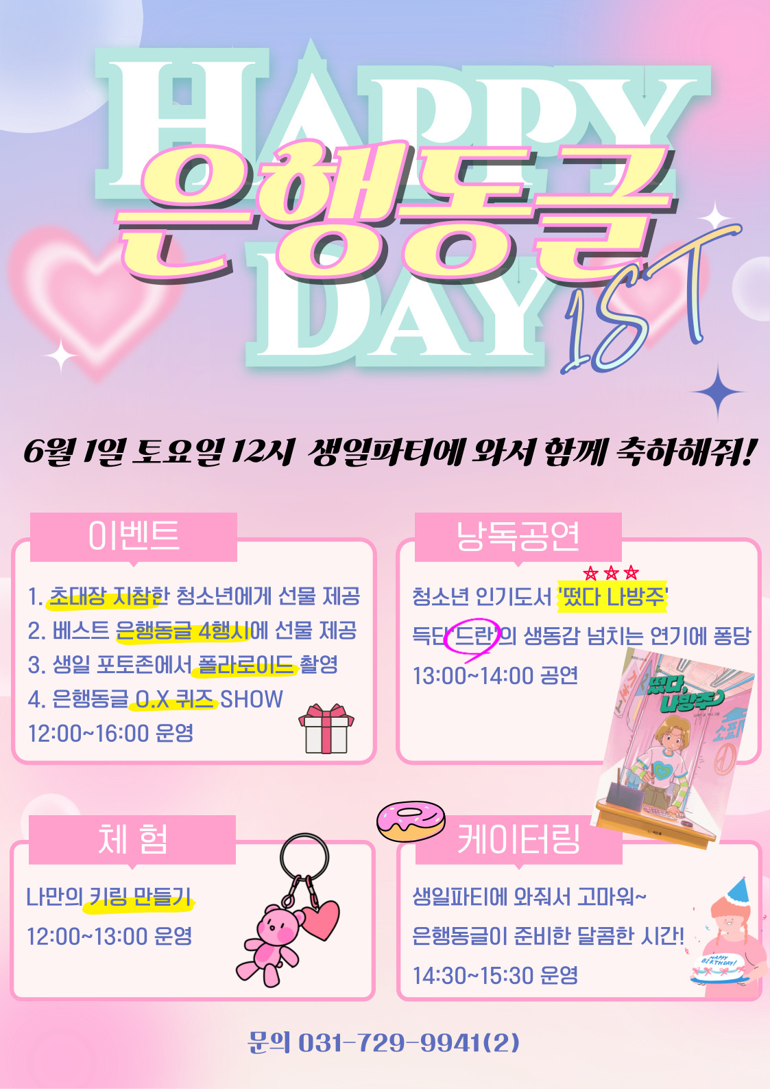 은행동글 오픈 1주년 기념 생일파티에 청소년들을 초대하고자 합니다!