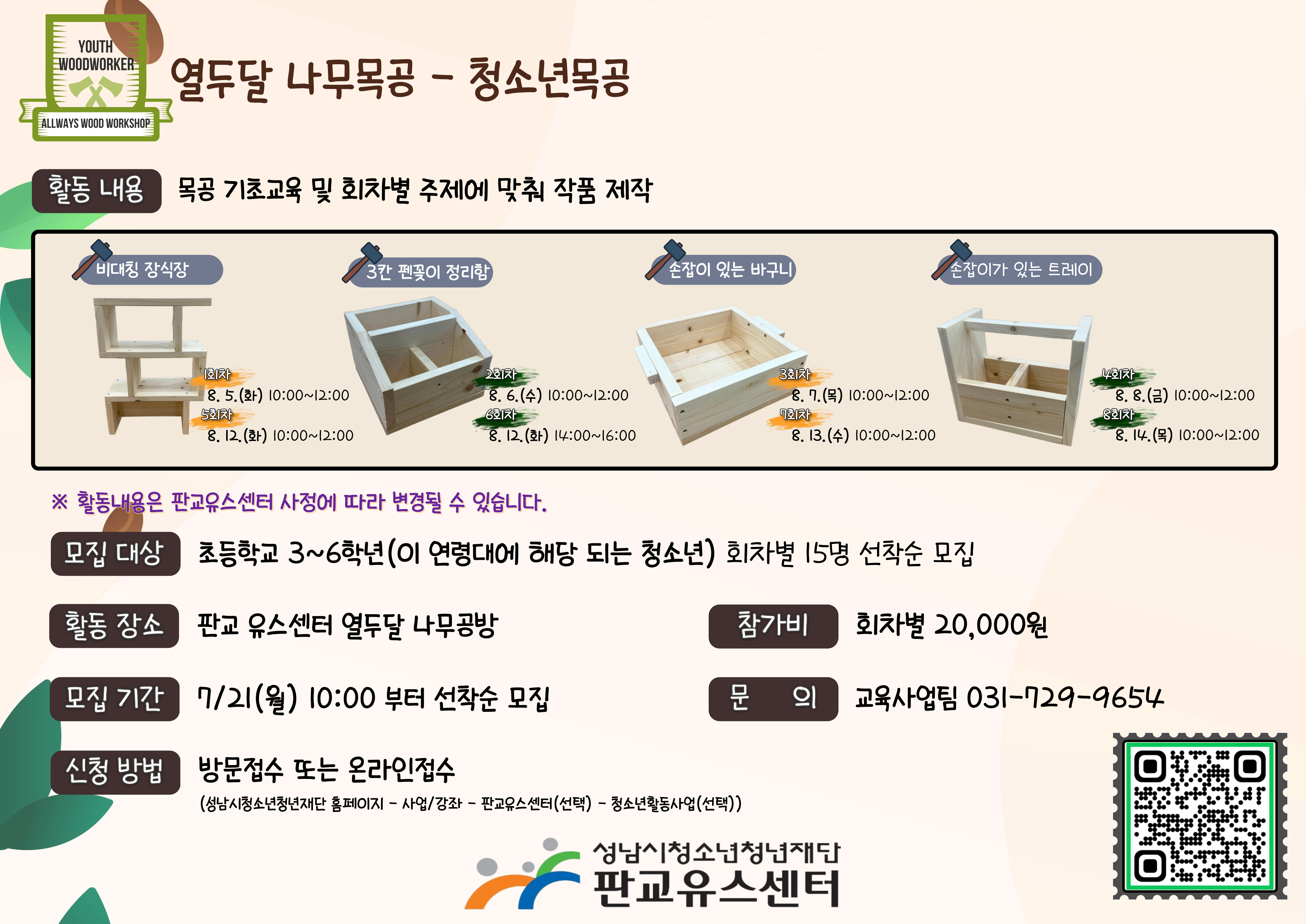 - 문의 : 판교유스센터 교육사업팀 031-729-9654