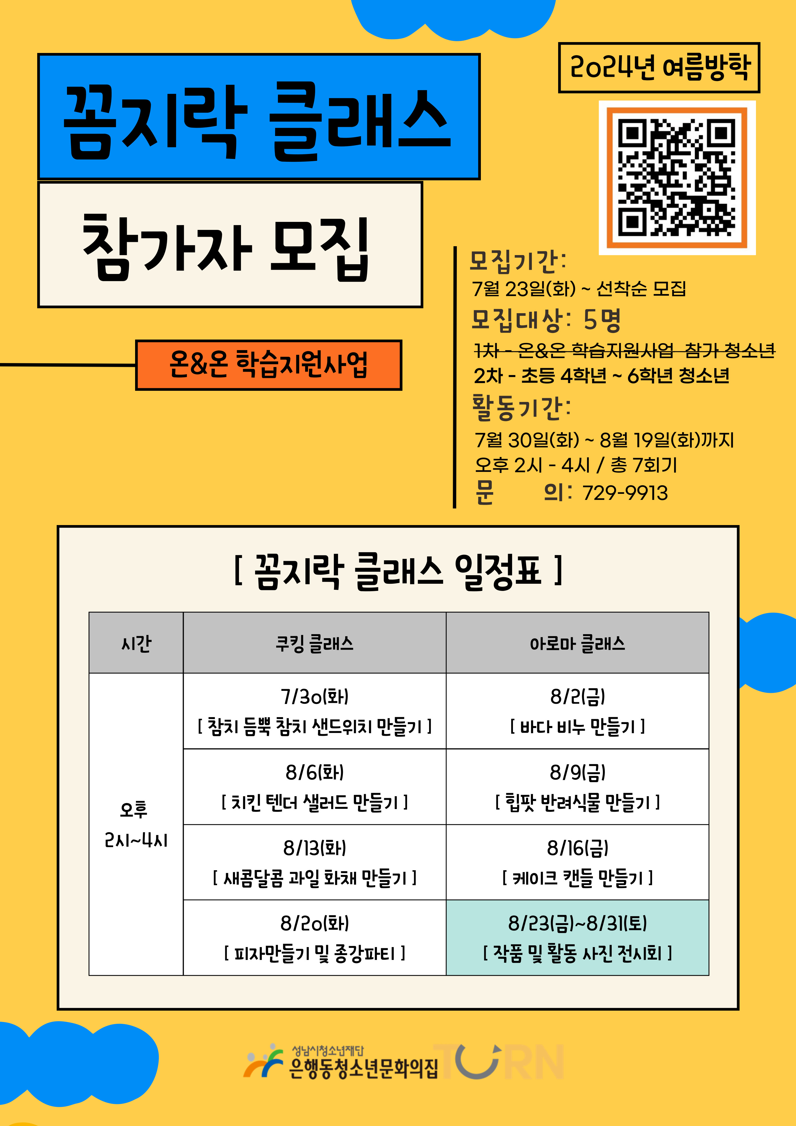 여름방학 기간 진행되는 <7회> 원데이 클래스! [꼼지락 클래스]