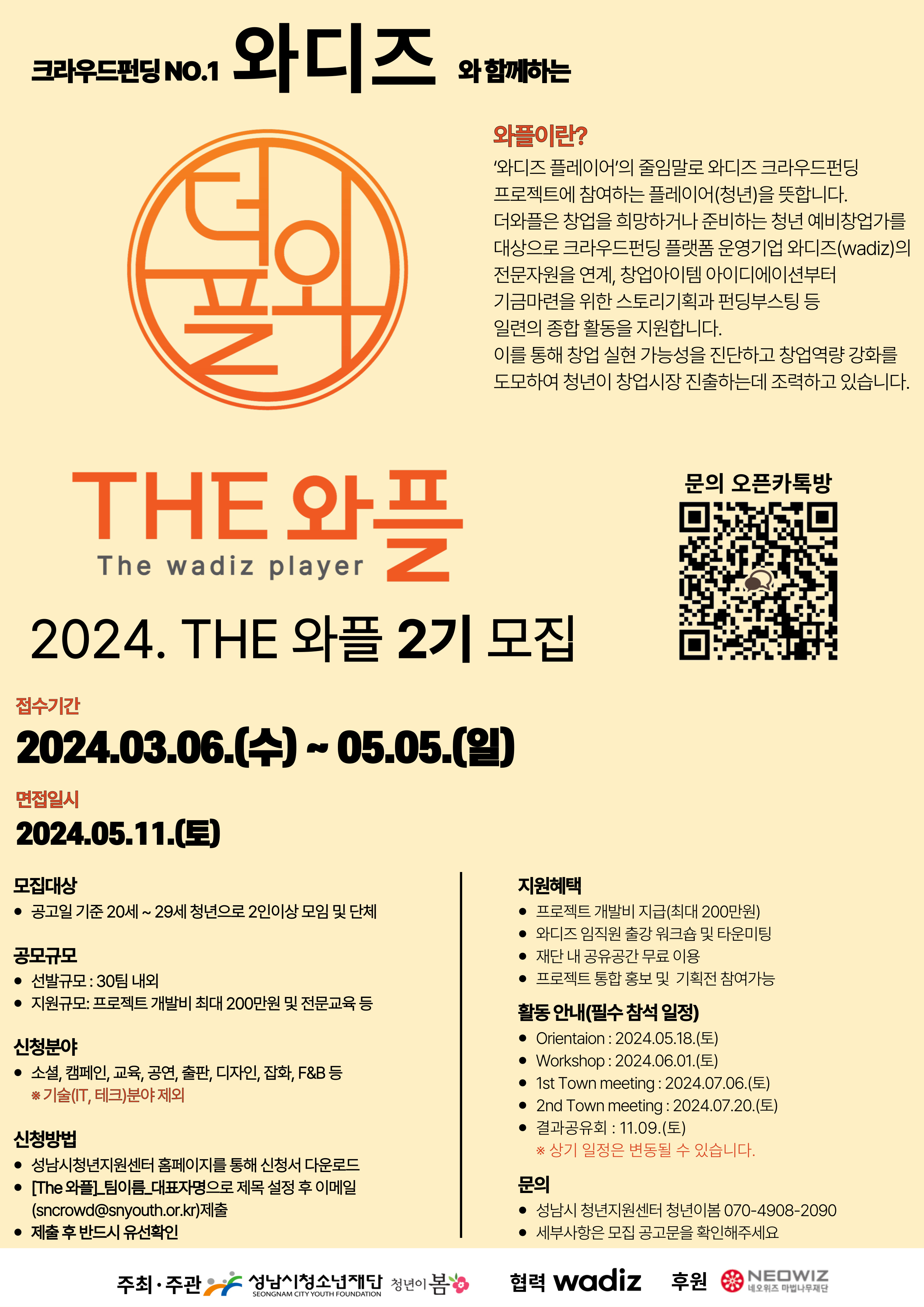 2024. 성남 청년 창업지원 역량강화 프로젝트「THE 와플」모집