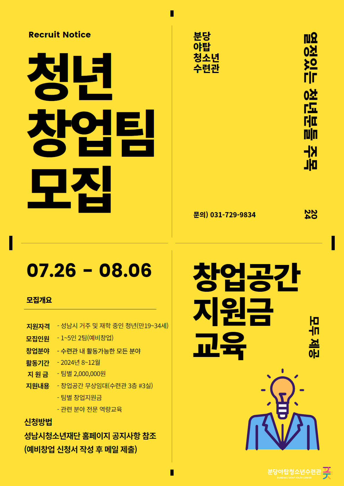 - 문 의: 분당야탑청소년수련관 활동사업팀 031-729-9834