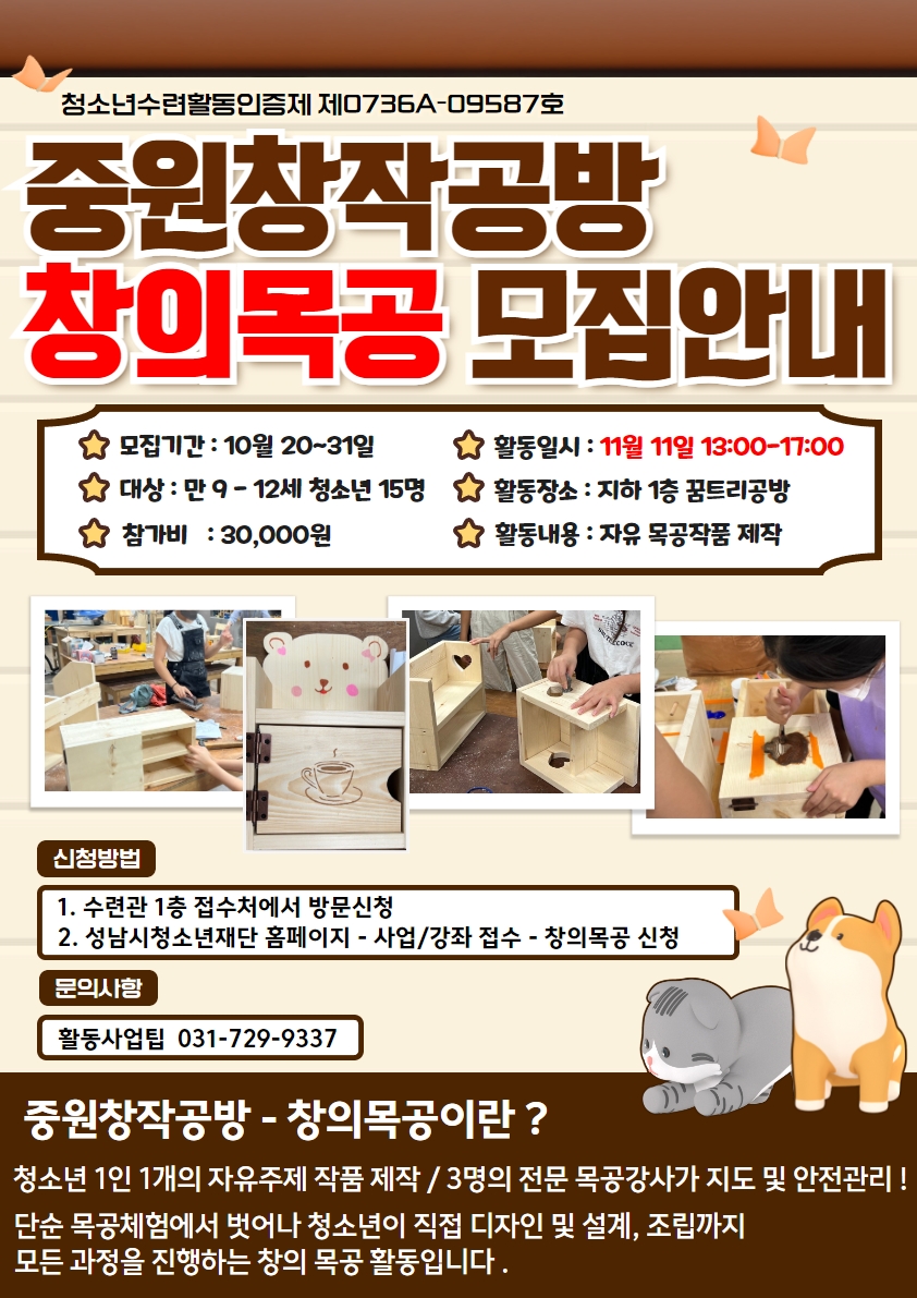 중원창작공방 - 창의목공(2차) 참가자 모집안내