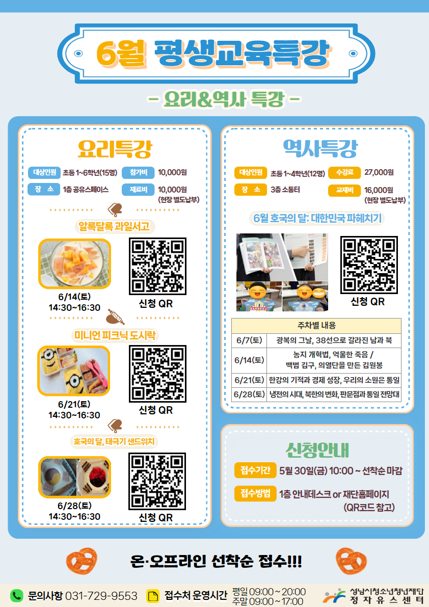 정자유스센터에서 6월을 맞이하여 다양한 프로그램들이 특강들이 진행됩니다.