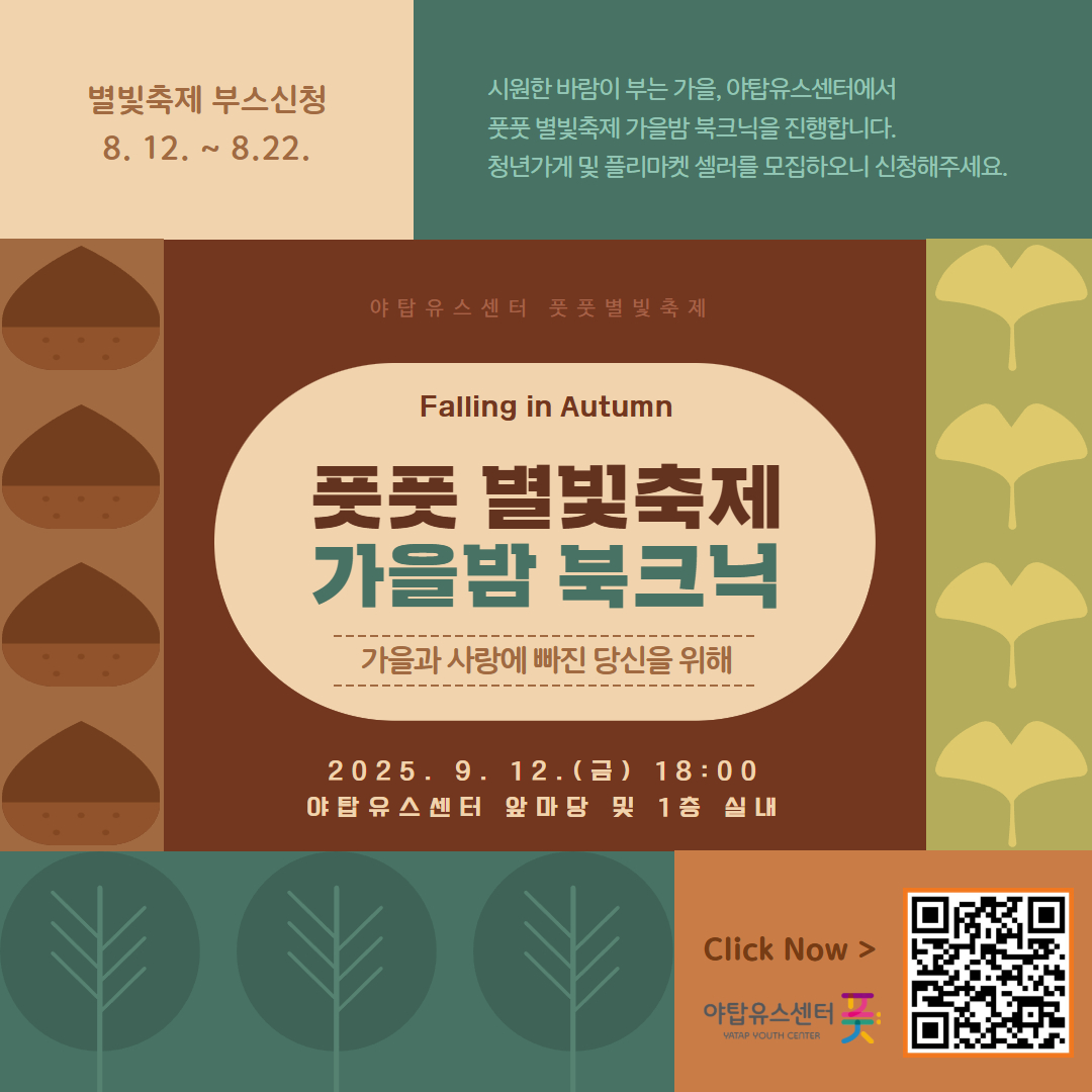 [야탑유스센터]에서는 풋풋 별빛축제 가을밤북크닉을 진행합니다.