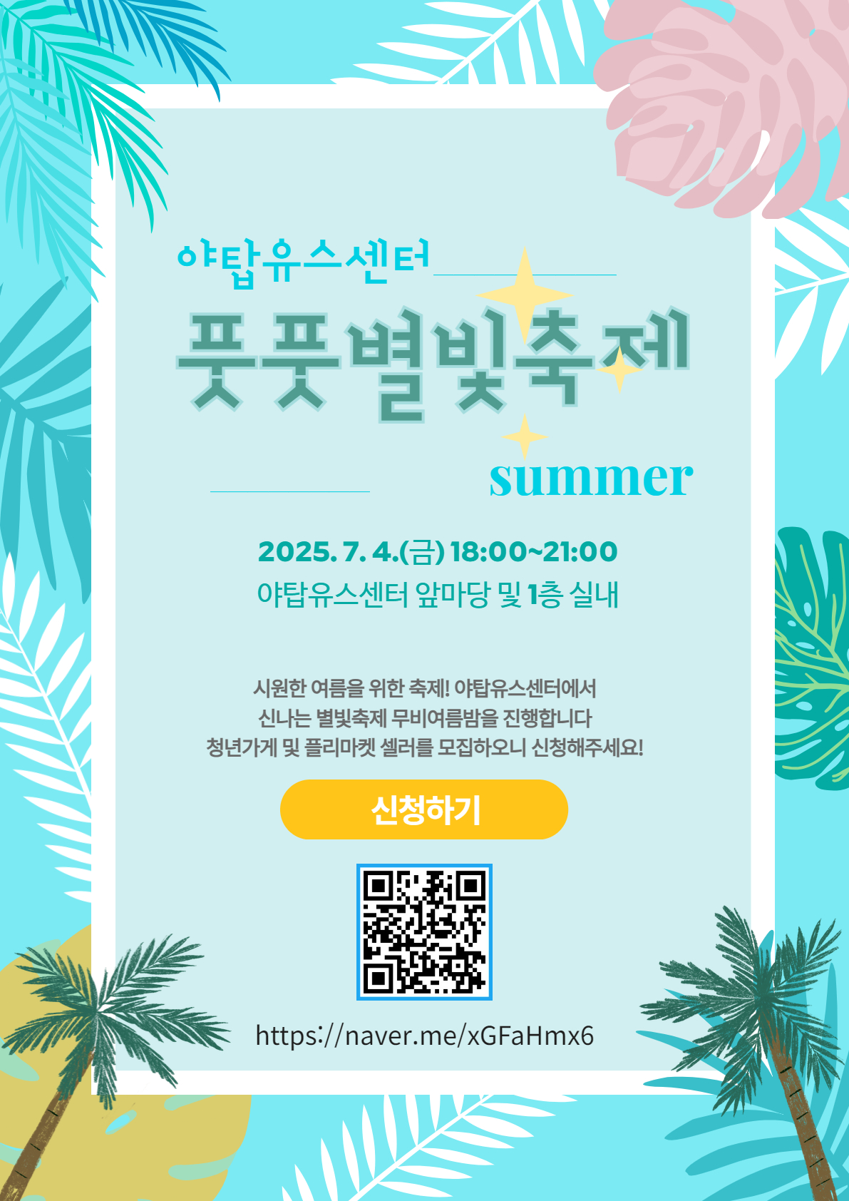 [야탑유스센터]에서는 풋풋 별빛★축제 무비여름밤을 진행합니다.