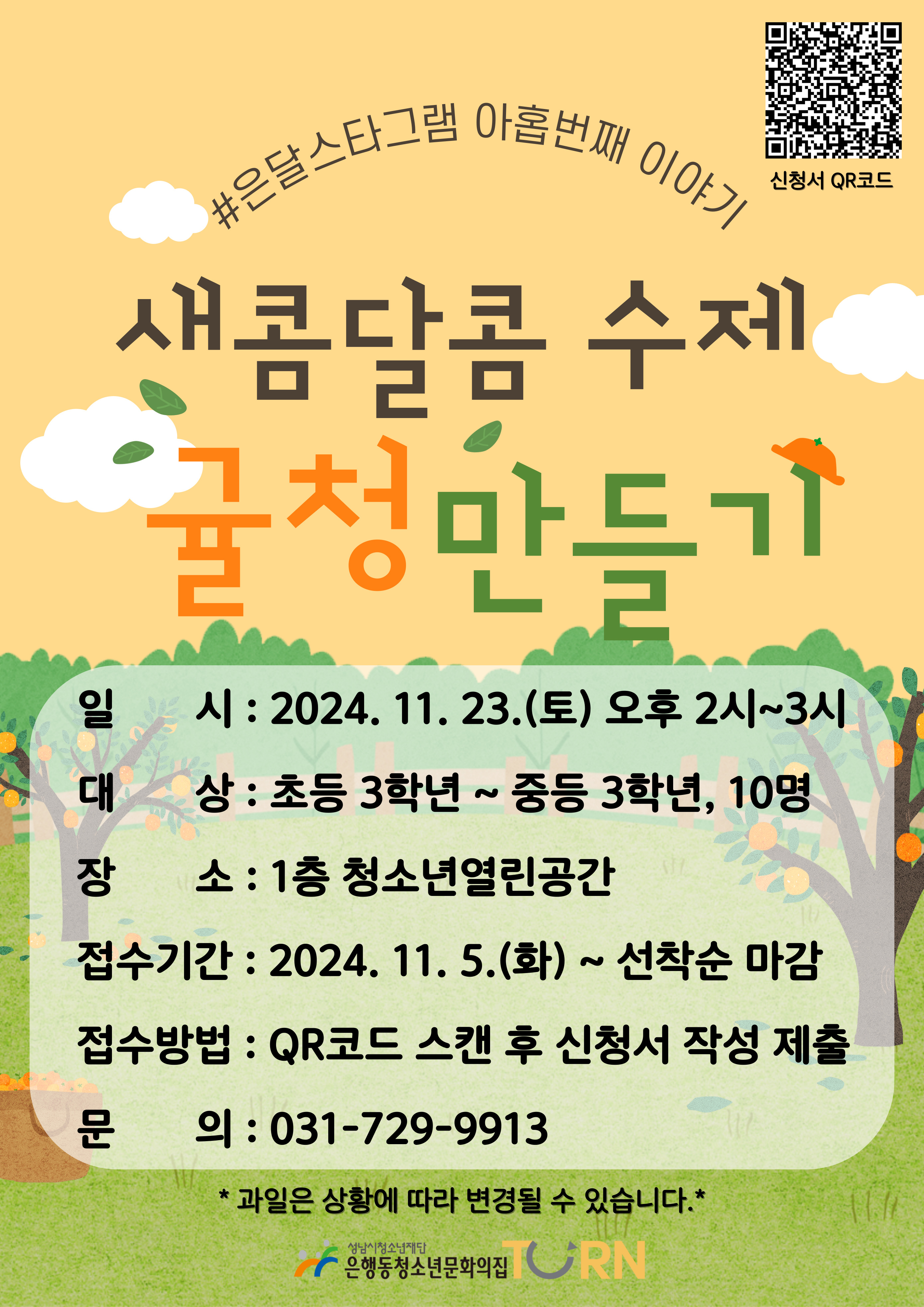 - 신청방법: 하단 홍보포스터 내 큐알코드 접속 후, 신청서 작성