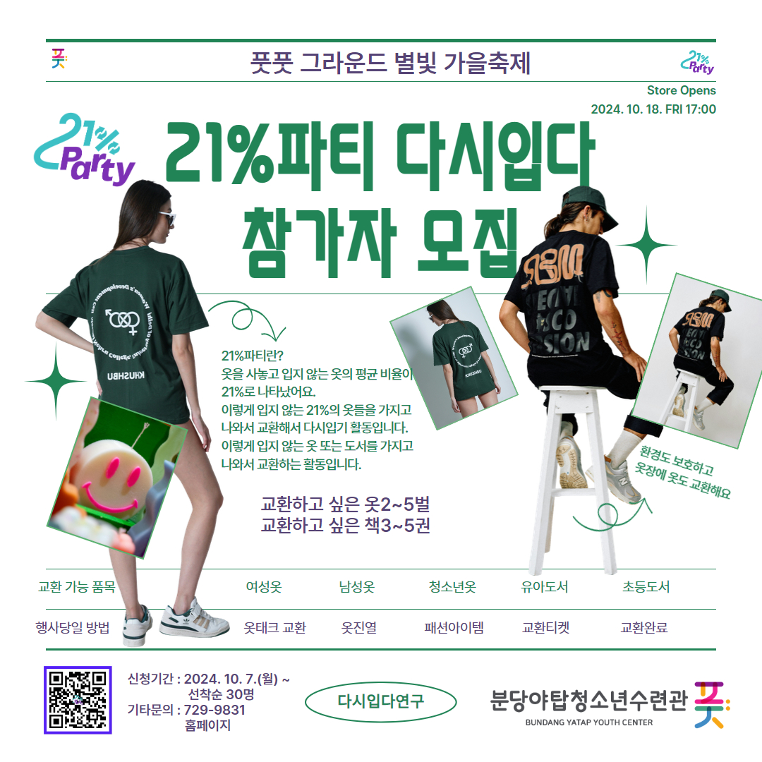 야탑청소년수련관 앞마당 21%파티 다시입다 부스