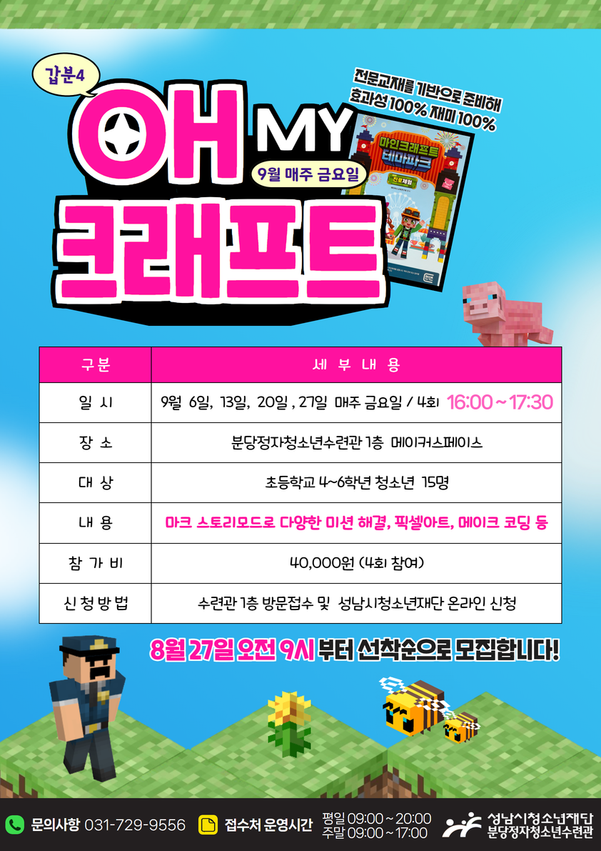 2) 성남시청소년재단 사이트 > 사업/강좌 > 오 마이 크래프트 > 신청