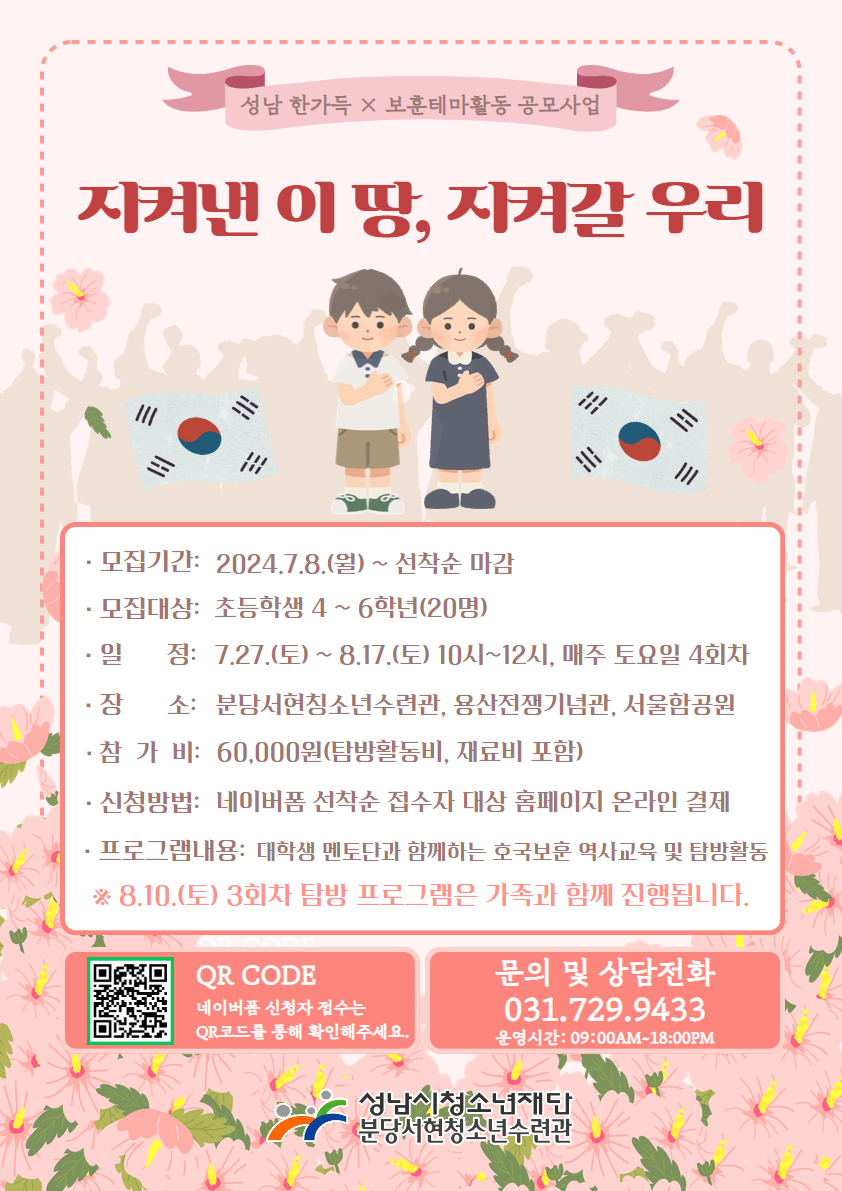 성남 한가(家)득 보훈 테마활동 『지켜낸 이 땅, 지켜갈 우리』 참가자 모집 안내