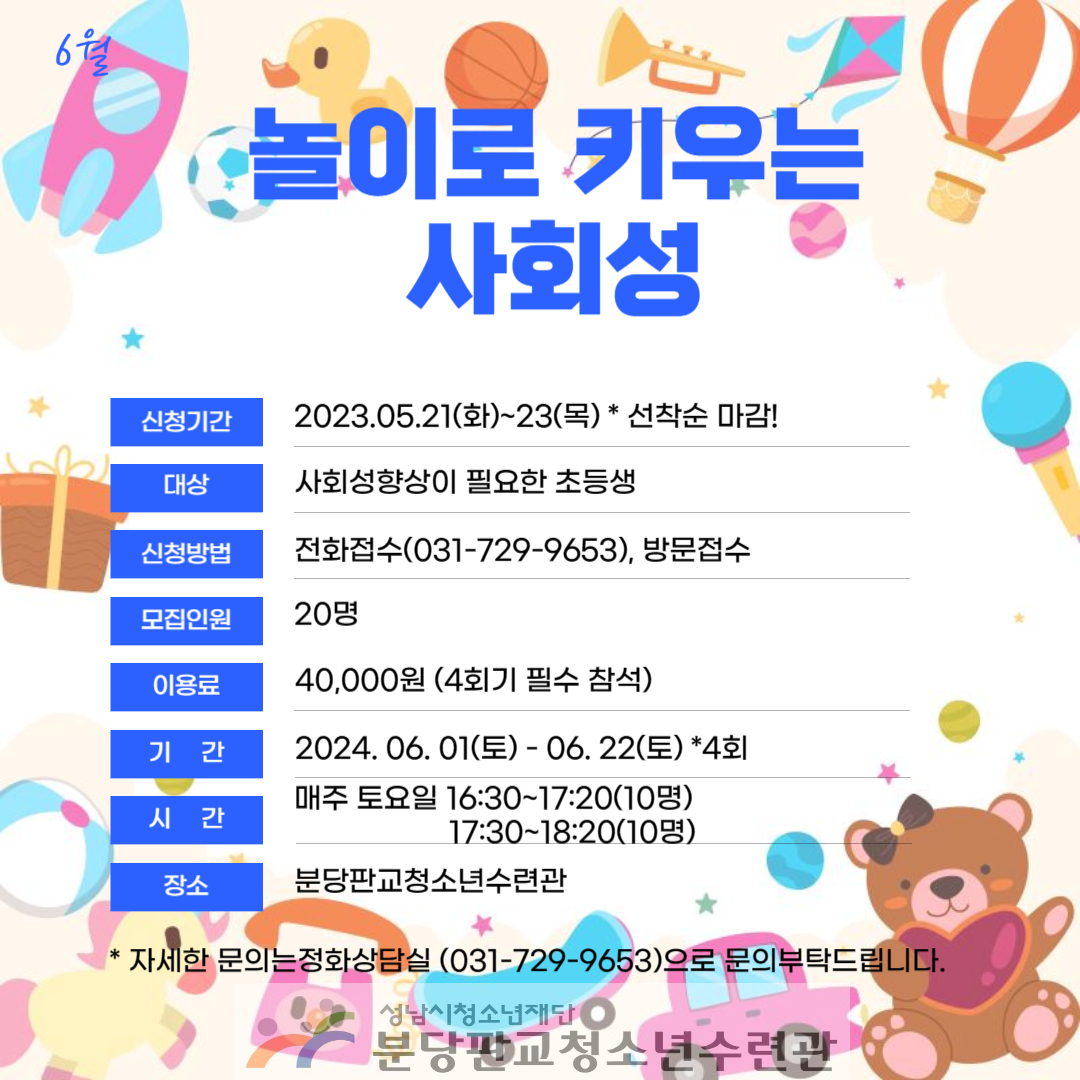 [놀이로 키우는 사회성] 프로그램 접수 안내