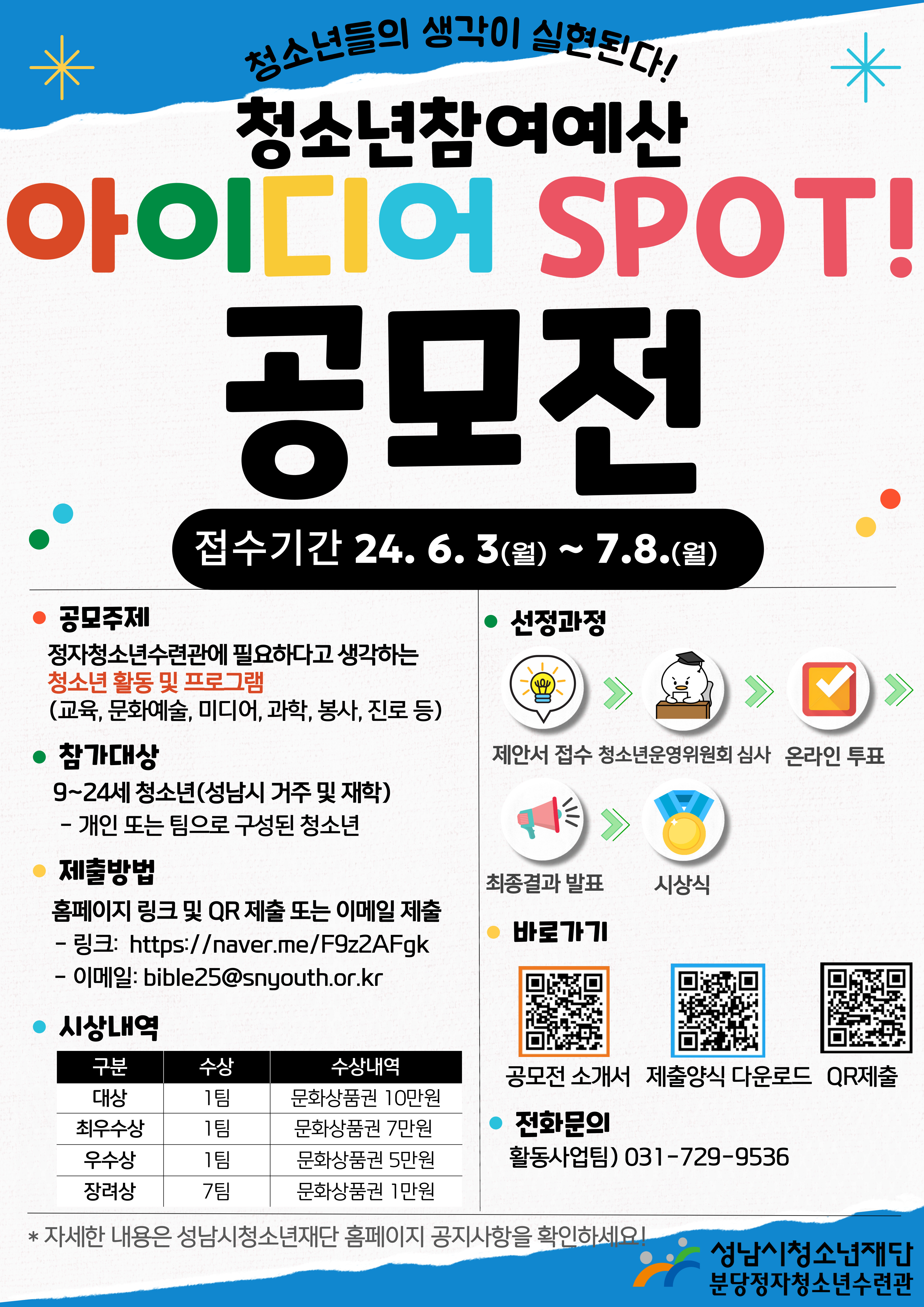 청소년참여예산 [아이디어 SPOT!] 공모전 재안내