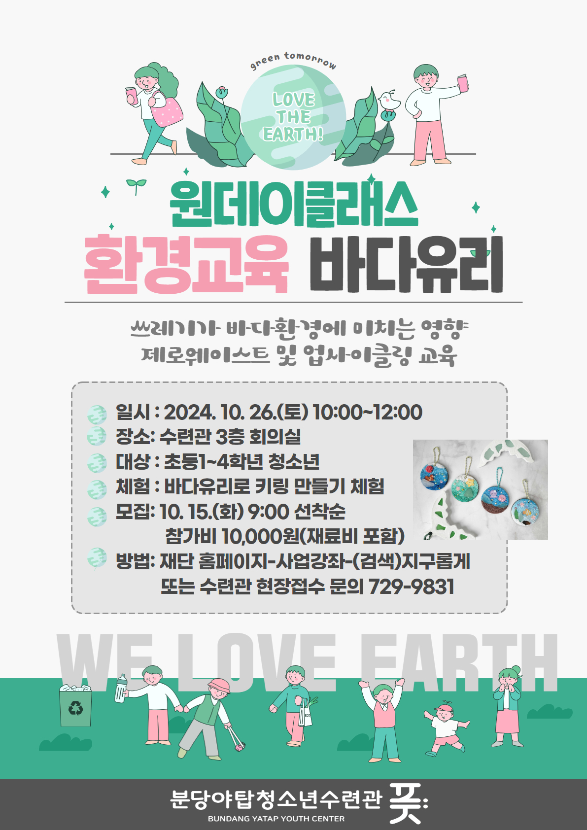 2024. 10월 [업사이클링 바다유리체험] 지구롭게 환경교육 참가자 모집