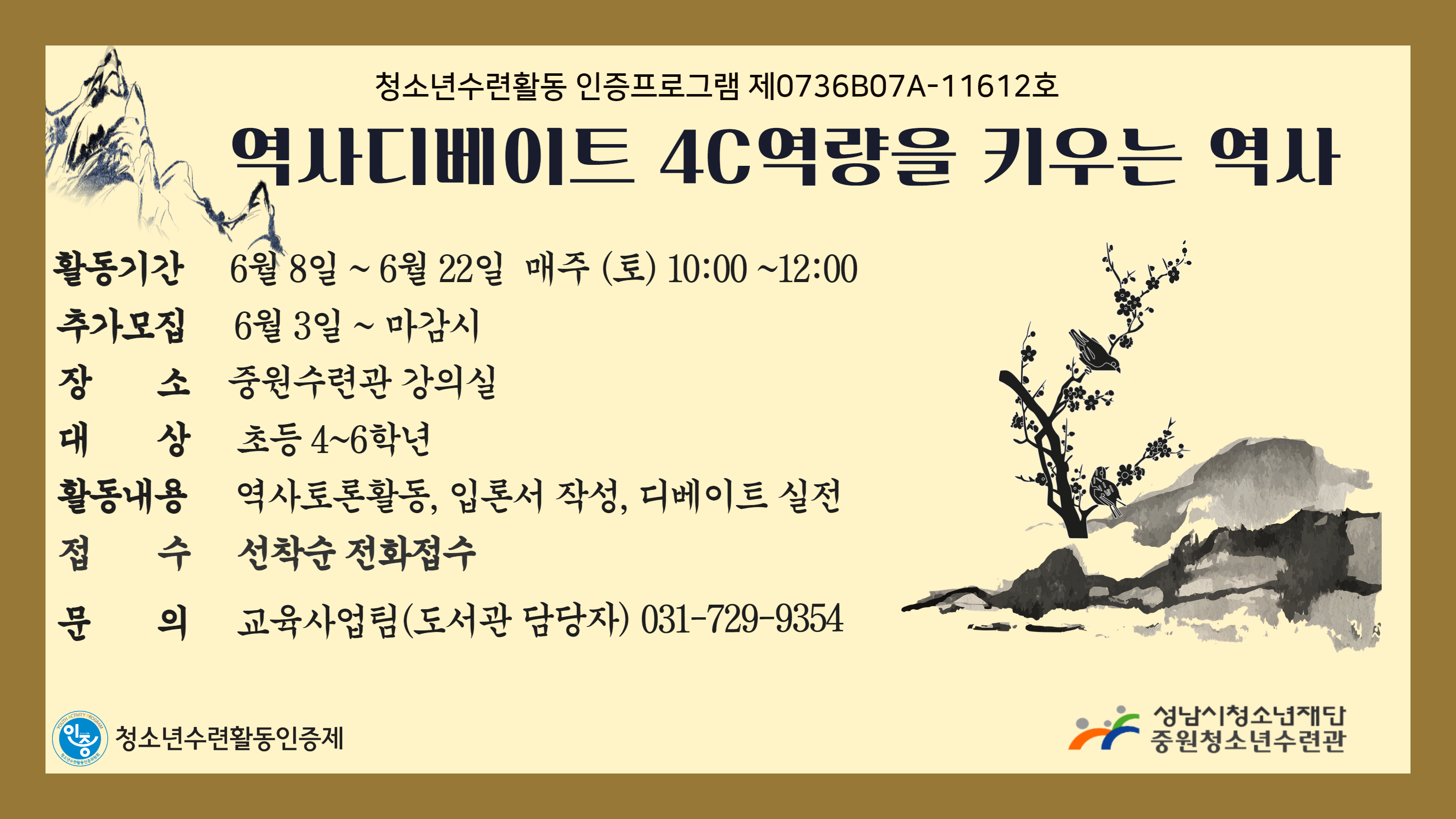 - (인증)역사디베이트 "4C역량을 키우는 역사" 참가자 추가 모집 안내 -