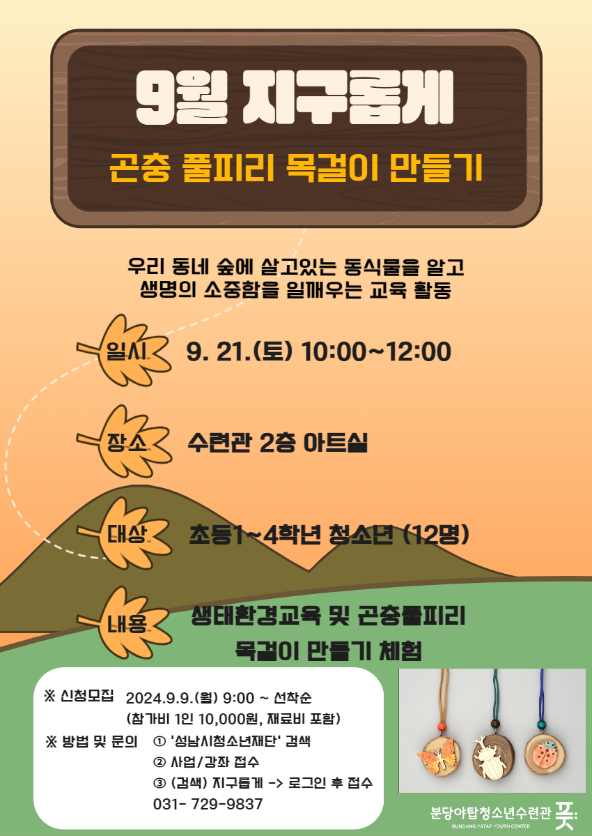 - 일시장소: 2024. 9. 21.(토) 10:00~12:00, 야탑청소년수련관 2층 아트실