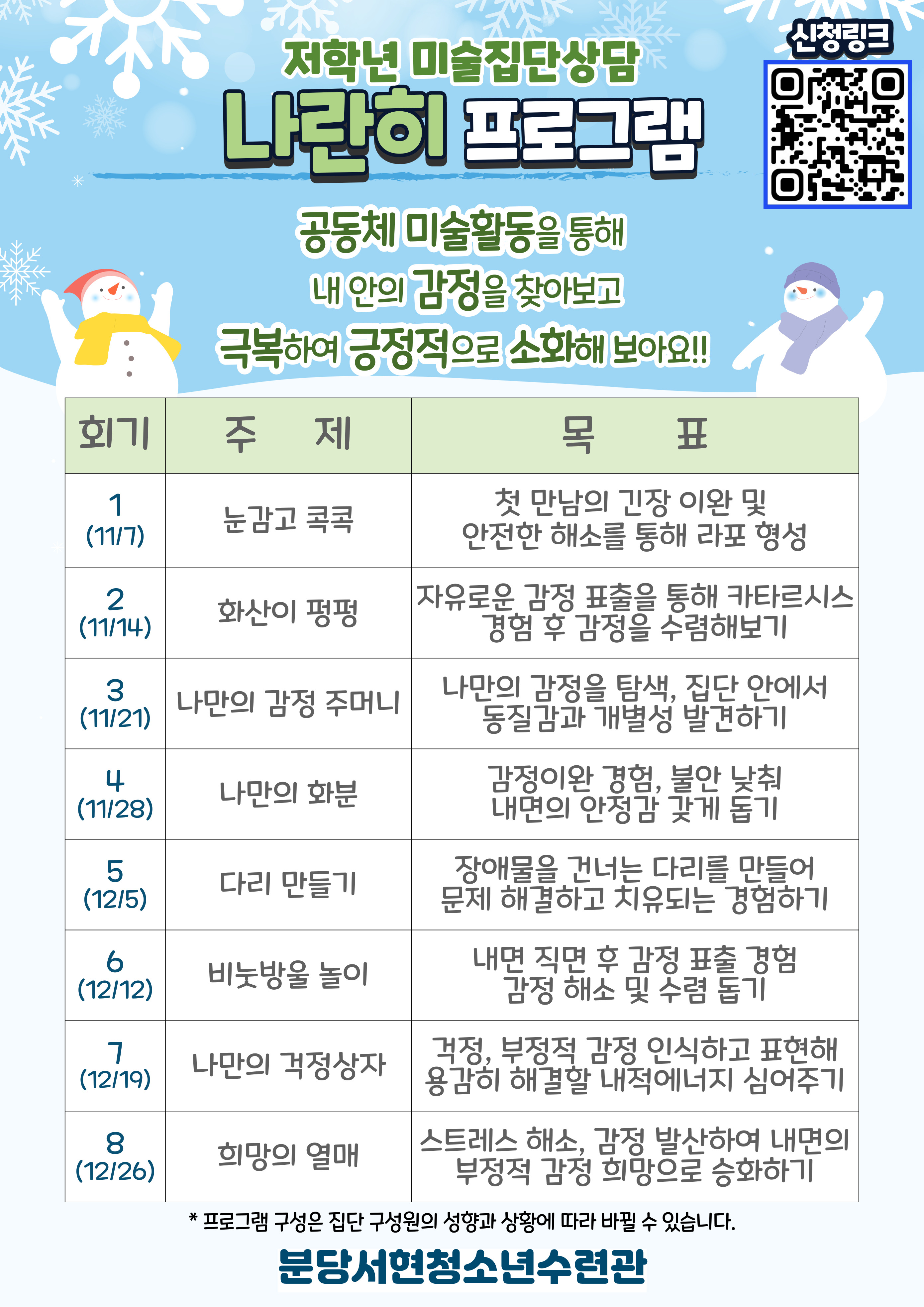 ○ 일정 : 11. 7. (목) ~ 12. 26. (목)_총 8회기 매주 '목'요일 16:00 ~ 17:00