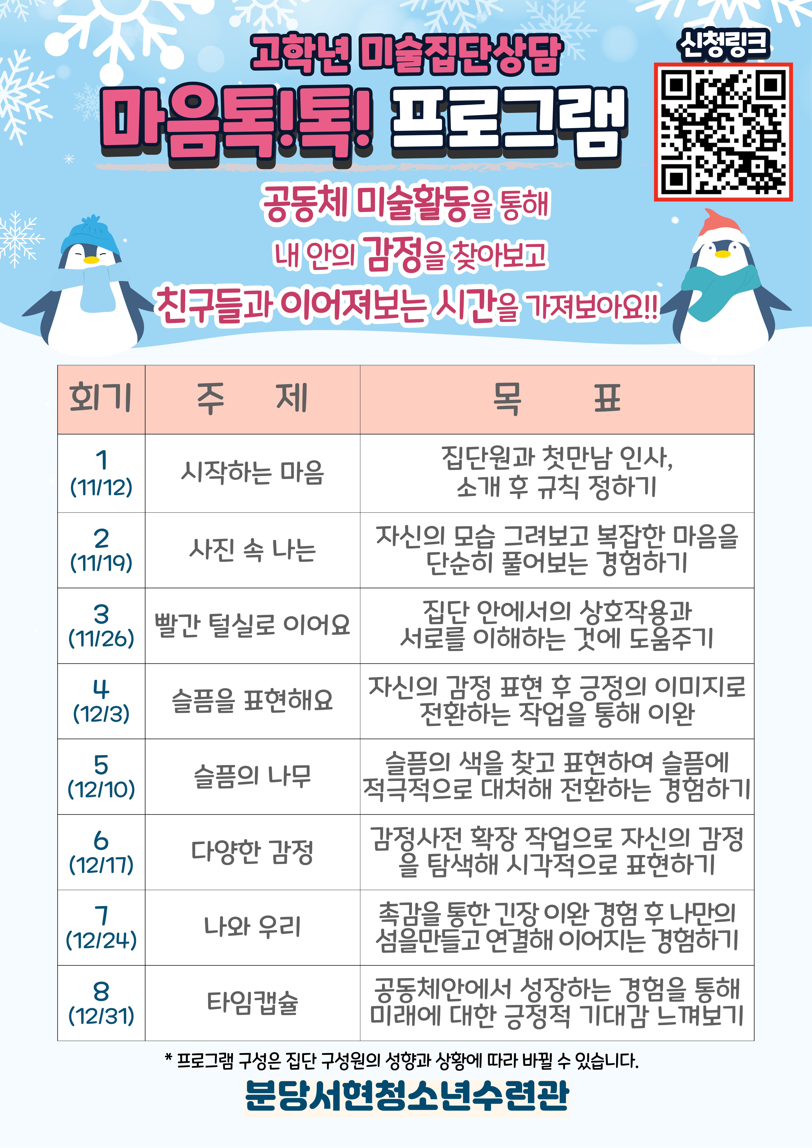 집단상담 접수는 10월 22일(화) 00시부터 11월 11일(월) 24시까지 네이버 폼으로 신청이 가능합니다!