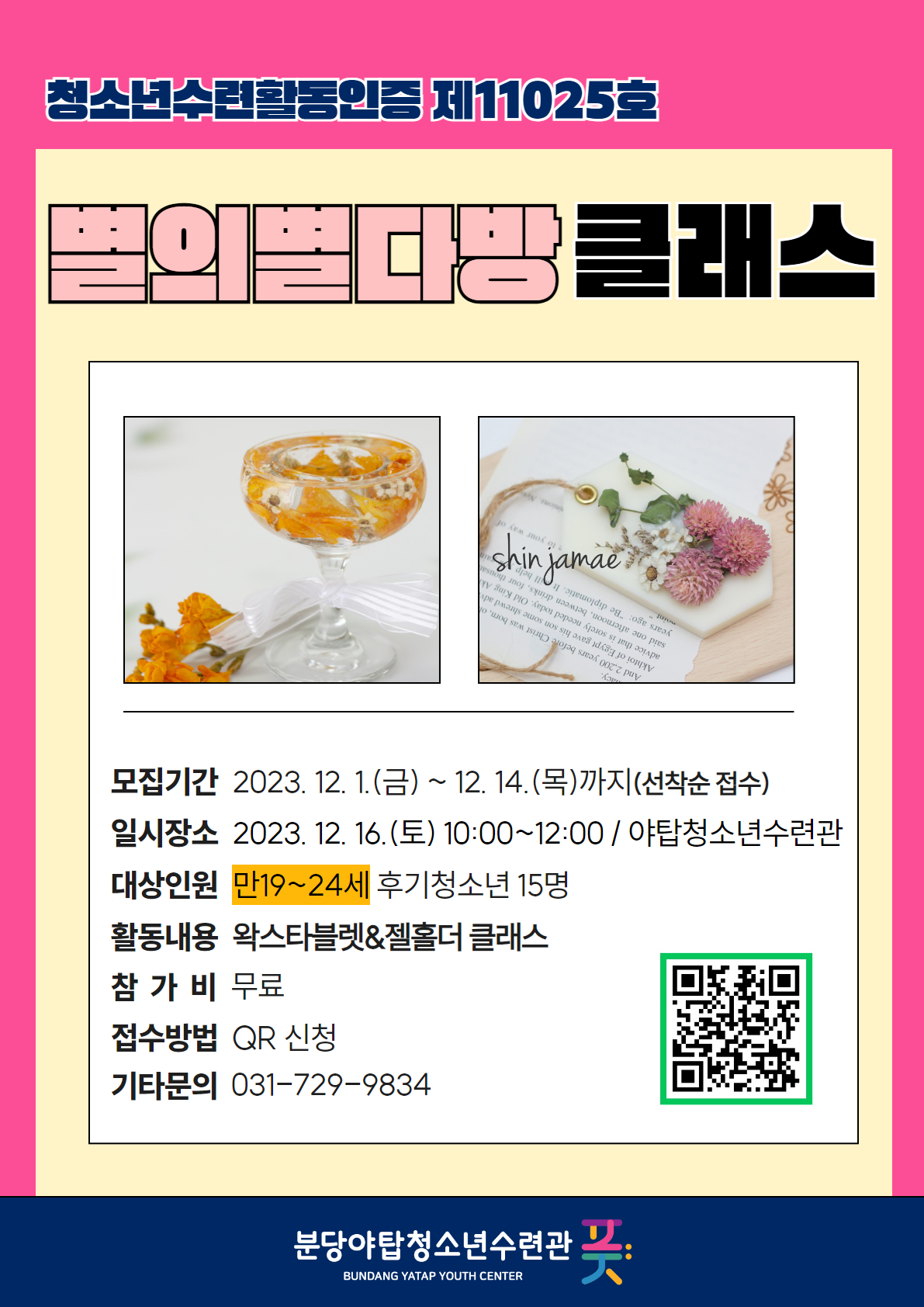- 일시장소: 2023. 12. 16.(토) 10:00~12:00, 야탑청소년수련관 1층 풋별별 카페