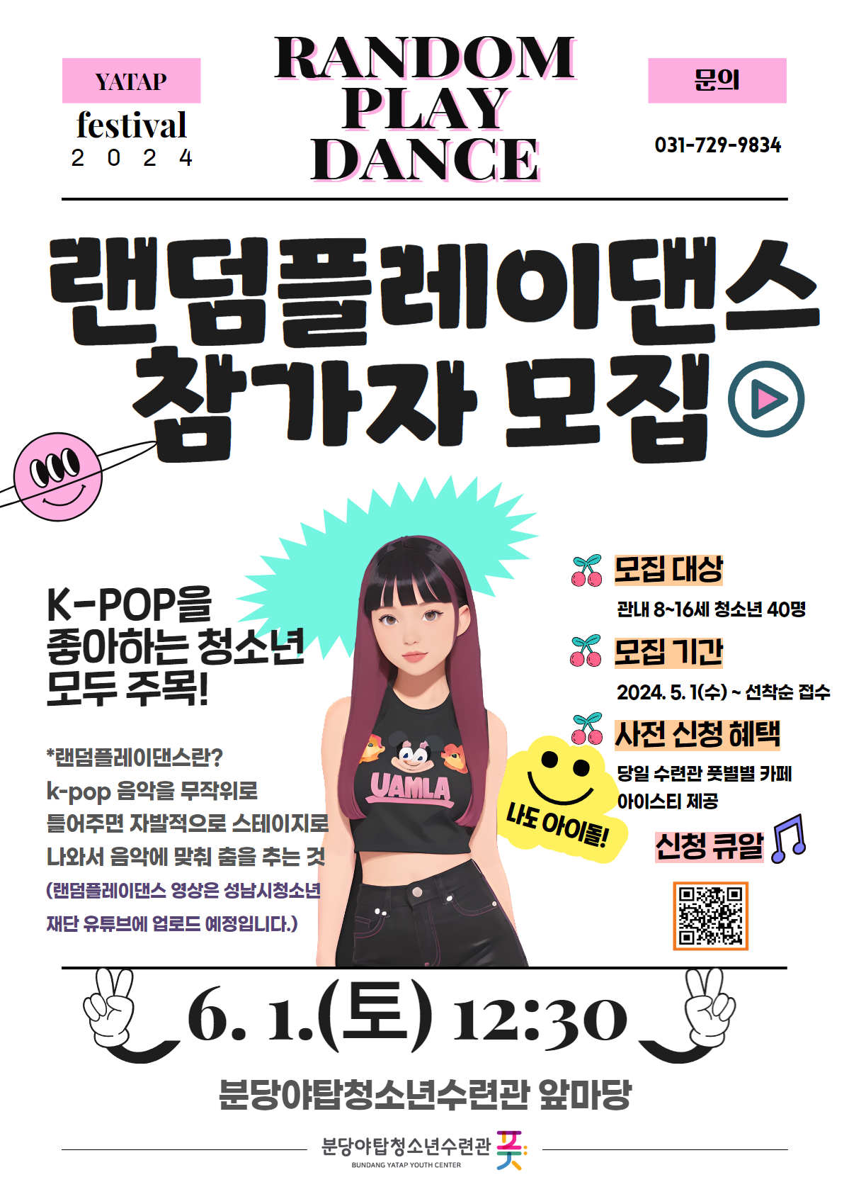 분당야탑청소년수련관에서는 성남시청소년어울림마당&청소년문화제 사업으로 [K-POP 랜덤 댄스 플레이] 참가 청소년을 모집합니다.