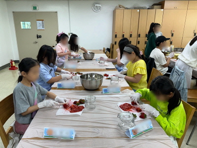 공정무역 교육과 함께 마스코바도 설탕을 활용한 딸기청만들기 활동을 하였습니다