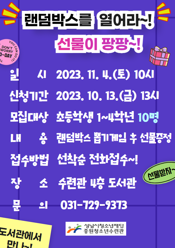 2023년 「랜덤박스를 열어라~! 선물이 팡팡~!」 참가자 모집안내