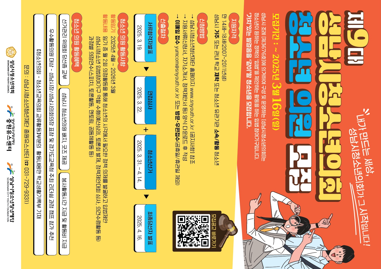 제9대 성남시청소년의회 신규위원을 모집합니다.