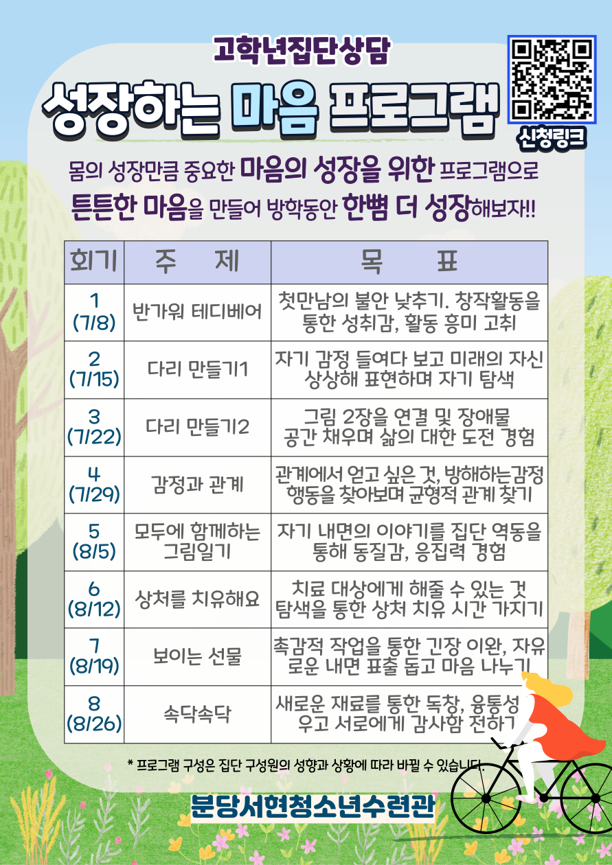 ○ 주제 : 몸의 성장만큼 중요한 마음의 성장을 위한 프로그램으로 튼튼한 마음을 만들어 방학동안 한뼘 더 성장해보자!!