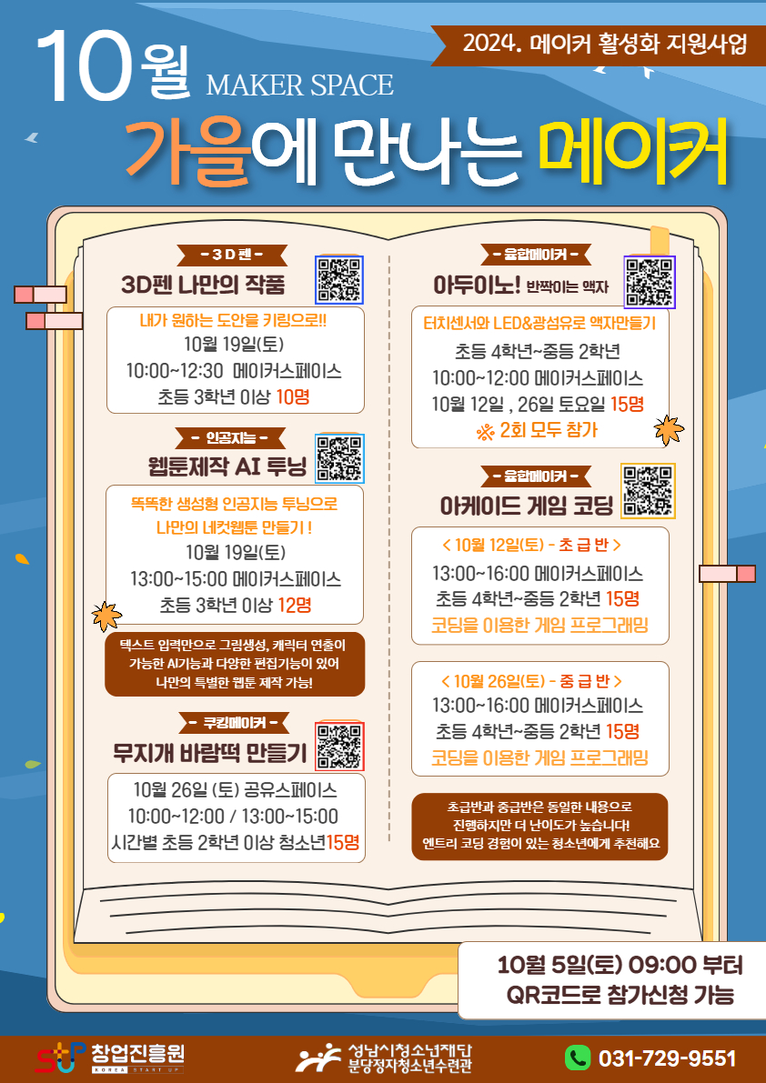 '분당정자청소년수련관 10월 메이커 체험' 참가안내
