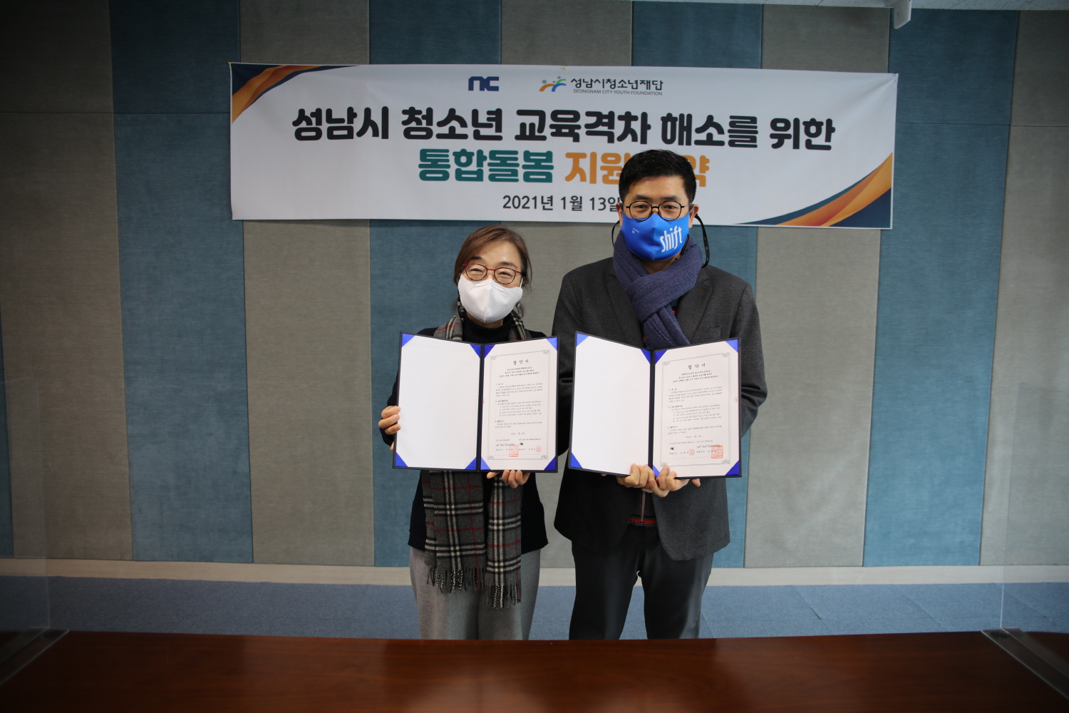 ㈜엔씨소프트는 성남시 판교에 기반을 둔 국내 최고의 글로벌 온라인·모바일 게임 개발사로 코로나19로 인한 청소년 교육격차와 돌봄 공백의 심각성을 공감하고 작년부터 성남시청소년재단에 긴급 후원금을 전달하는 등 성남시 청소년 교육환경 지원에 공동 협력하고 있다.