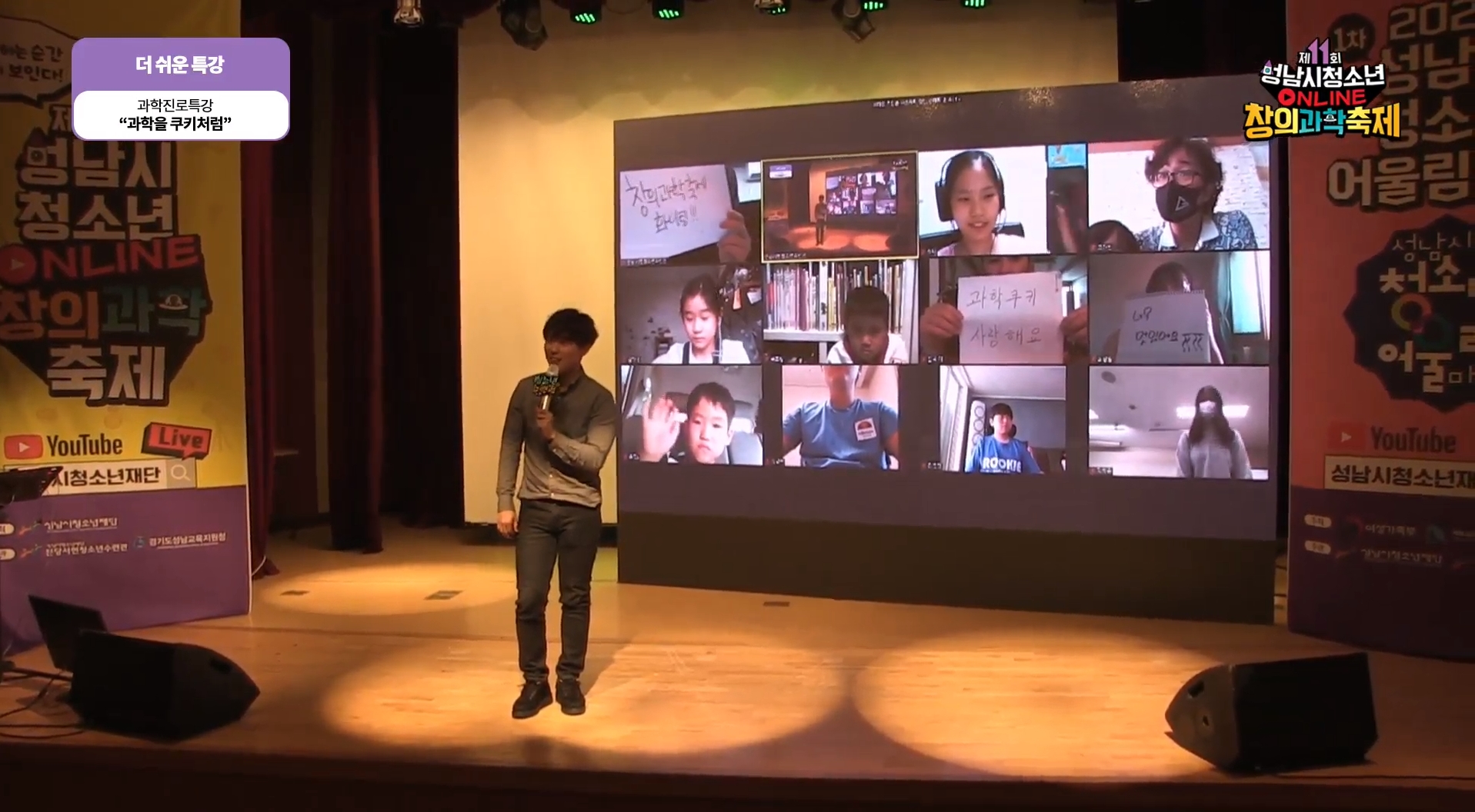 코로나-19로 인해 온라인으로 시도된 이번 창의과학축제는 성남시청소년재단 유튜브 채널에서 오후 1시부터 3시까지 2시간 동안 약 10,000명의 시청자들과 함께 진행되었다.