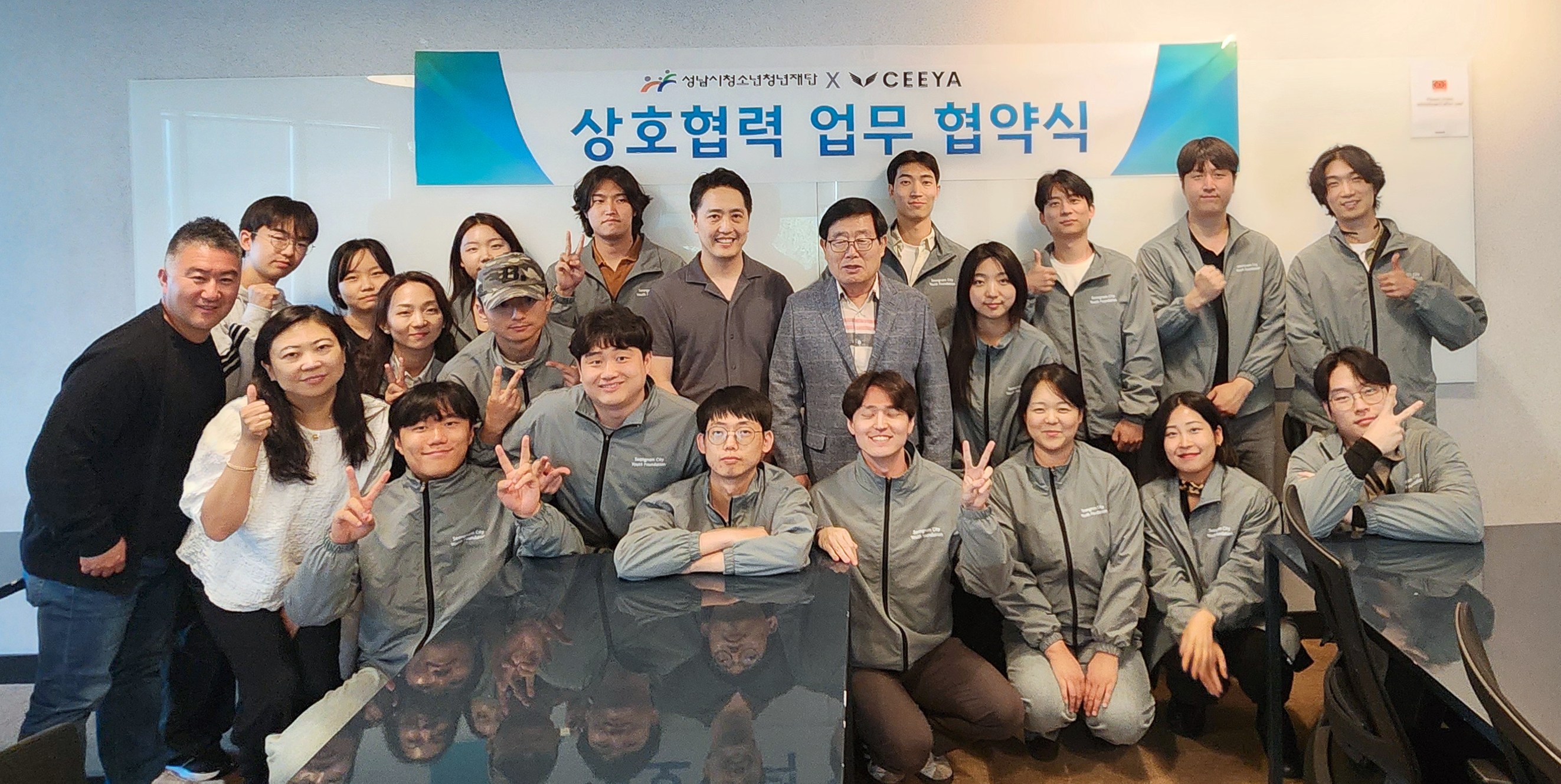 <재단-Ceeya MOU 사진_ 정 가운데 기준 (왼)Ceeya 대표이사 박기상 (오)성남시청소년청년재단 대표이사 양경석>
