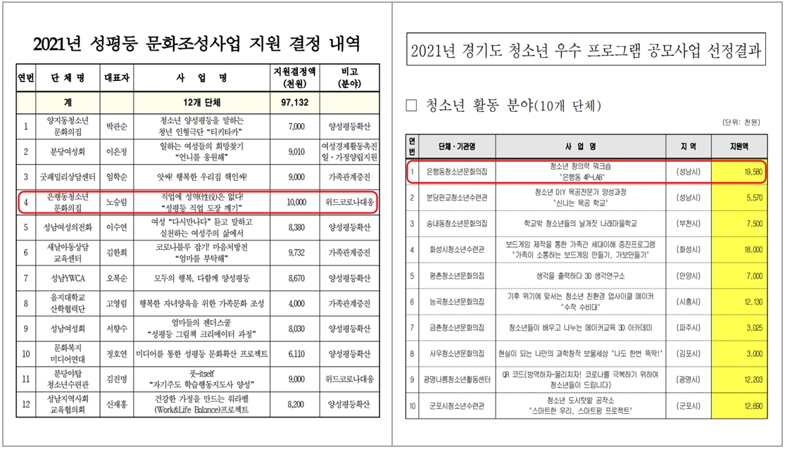 성남시청소년재단 은행동청소년문화의집, 공모사업 잇단 쾌거!