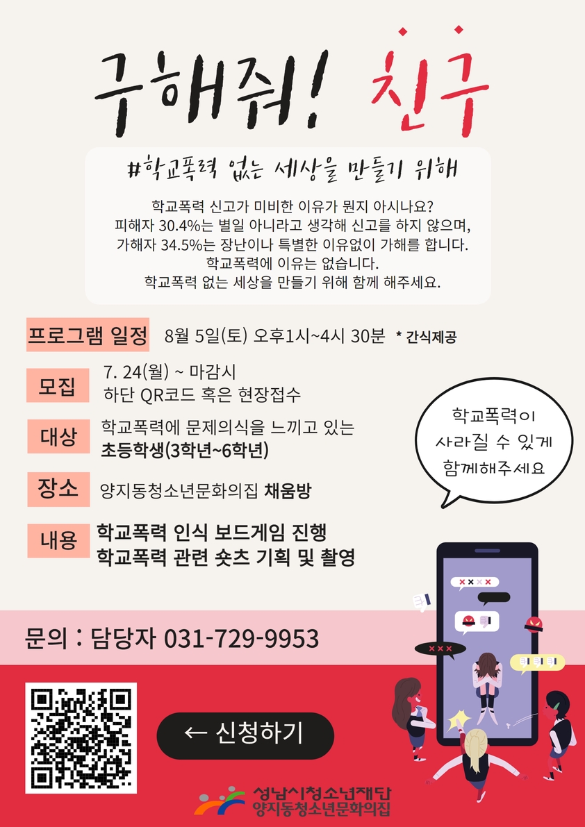 학교폭력 예방 프로그램 「구해줘! 친구」 참가자 모집안내