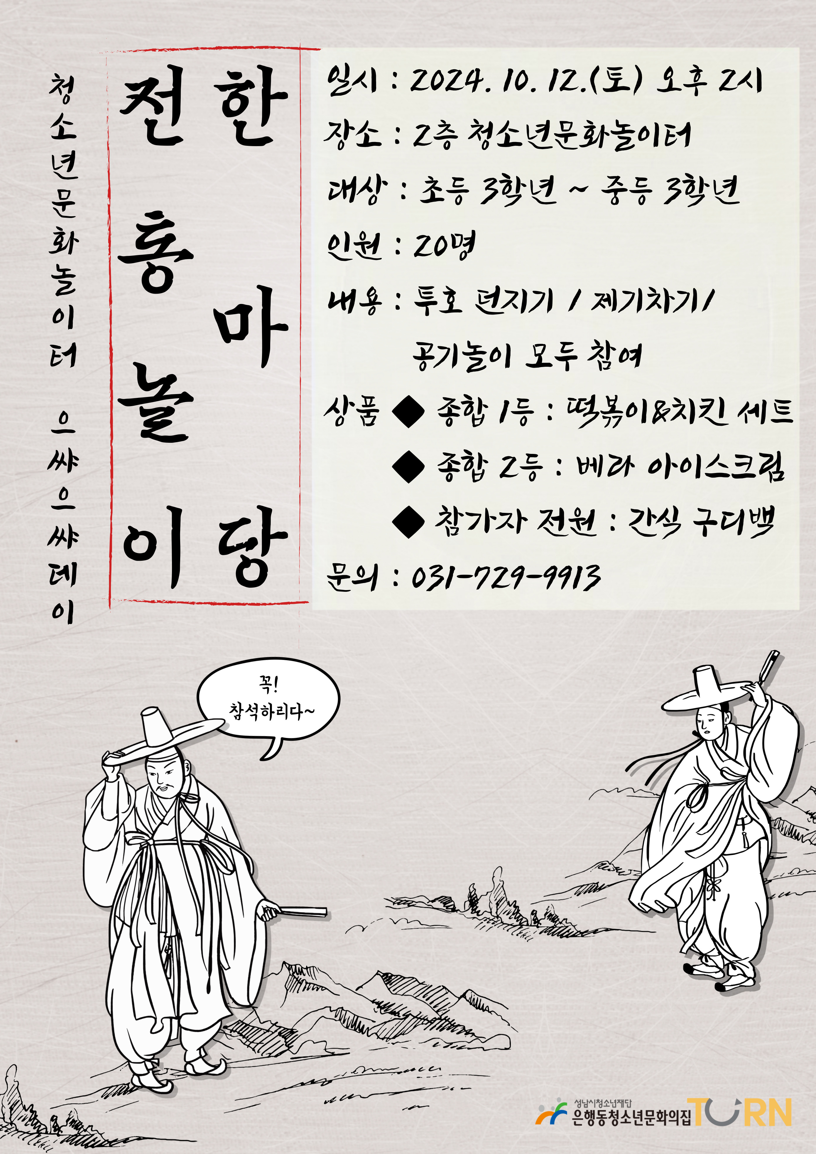 - 내용: 투호 던지기 / 제기차기 / 공기놀이 모두 참여!