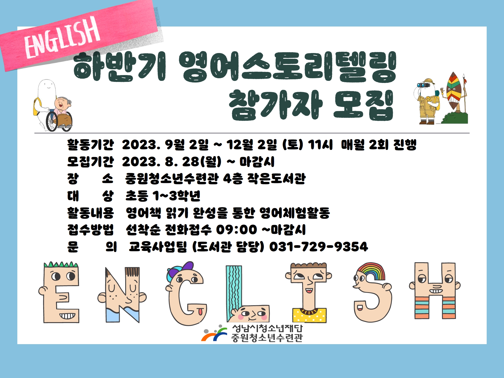 - 접수방법: 2023. 8월 28일(월) 선착순 전화접수 09:00 ~ 마감시