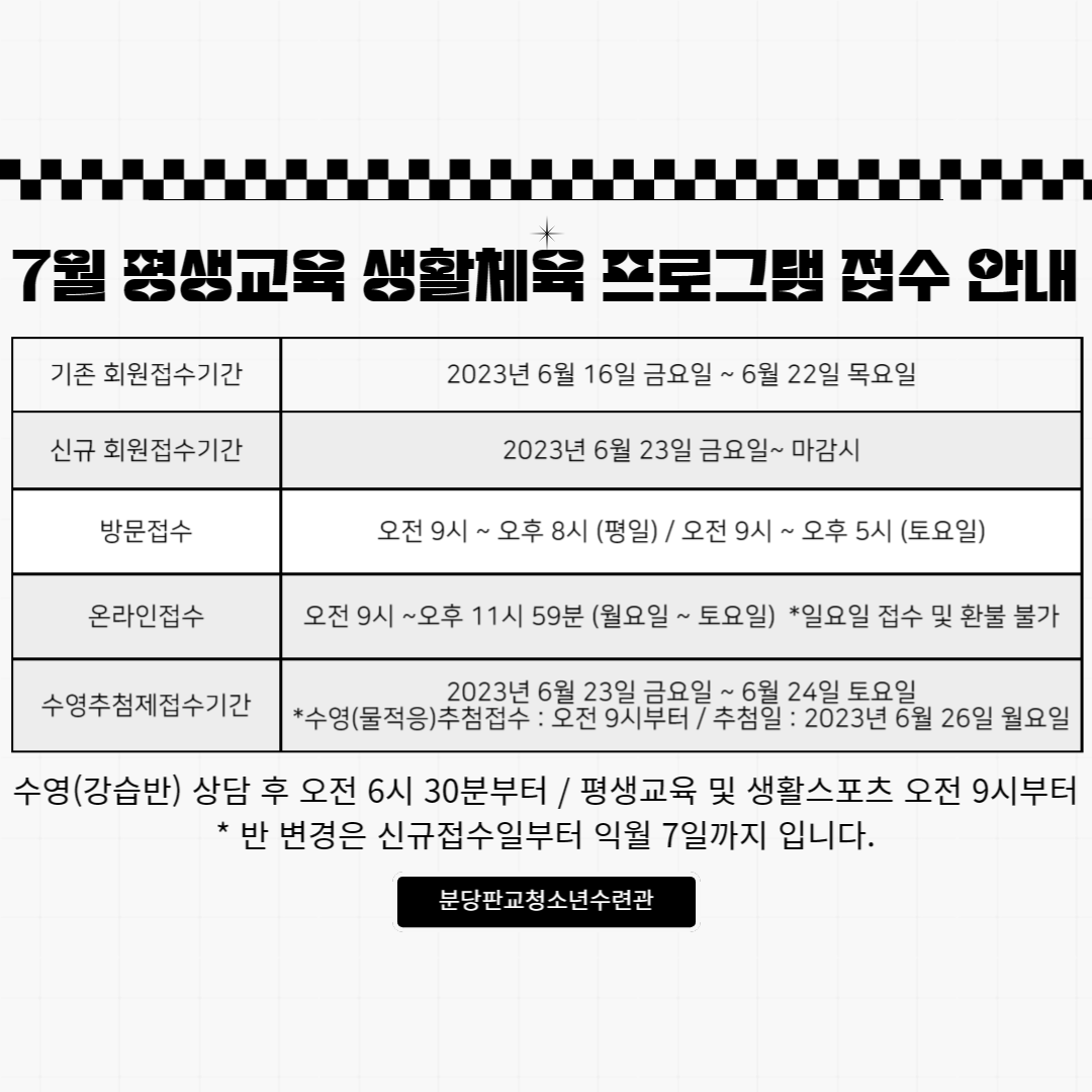 - 신규등록: 2023년 6월 23일(금) 09:00 ~ 6월 30일(금)
